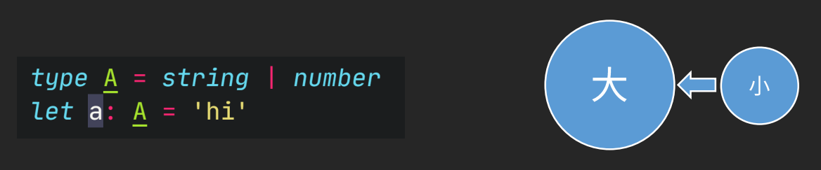 集合 hi 小于集合 A,因此将 hi 赋值给 a 不报错