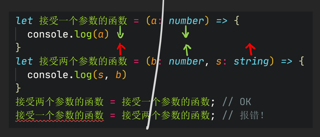 因此 接受一个参数的函数 兼容 接受两个参数的函数,反过来则不行