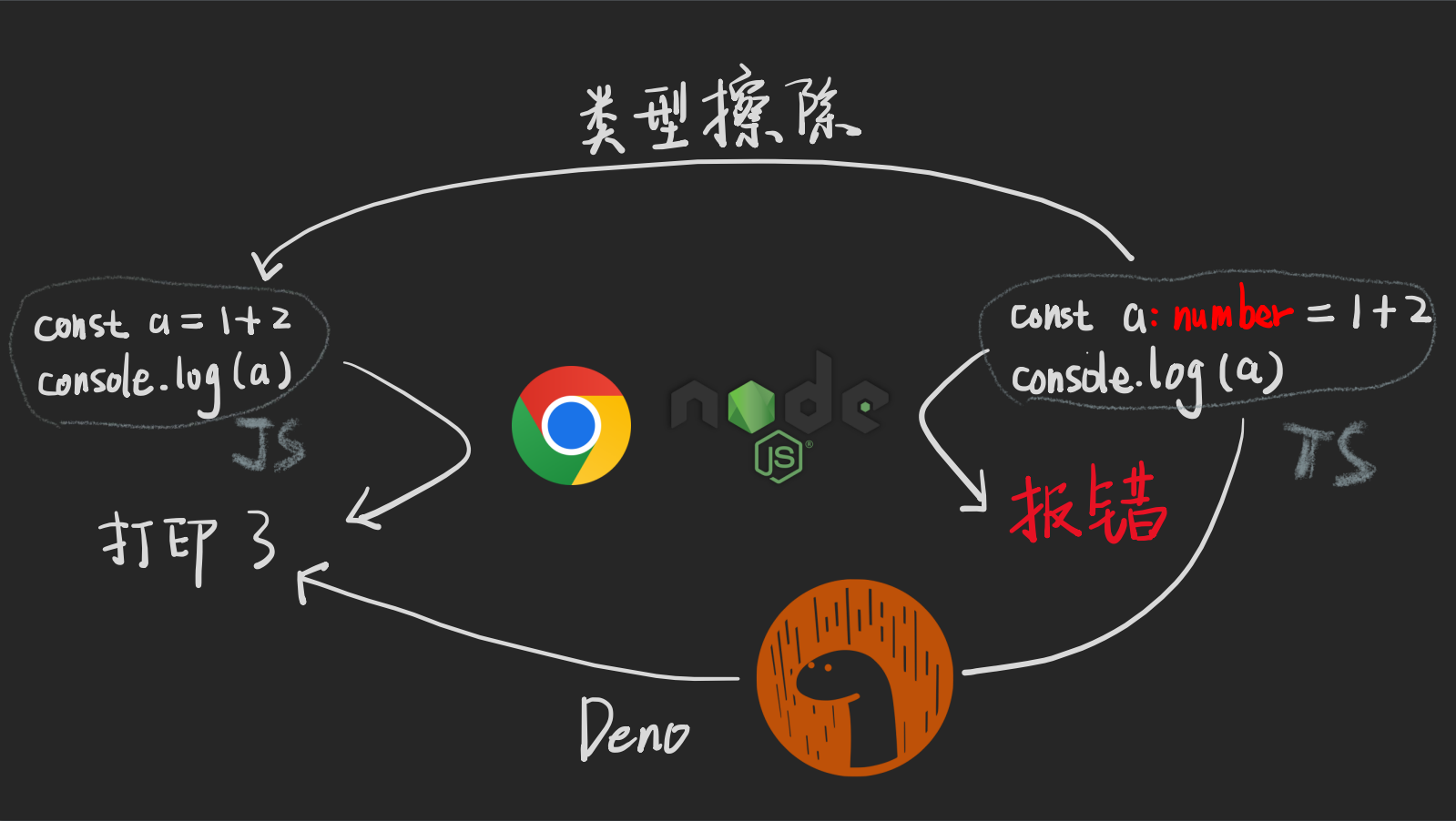 如何擦除类型 如何运行 TypeScript在线编辑 TypeScript Playground(缺点是 URL 太长) playcode stackblitz codesandbox 本地编辑 + 浏览器使用 vite 和 chrome 本地编辑 + Node ts-node swc-node @esbuild-kit/esm-loader esno 如何调试 Ty...